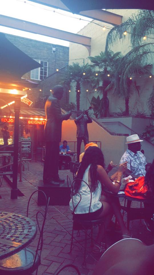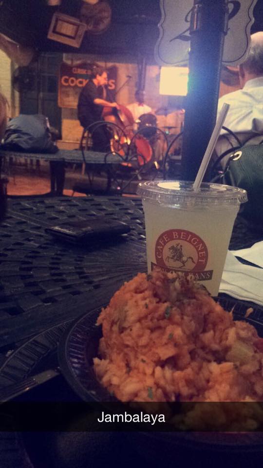 Pour ma première soirée à NOLA (diminutif de « Nouvelle-Orléans ») j’ai été manger dans un petit restaurant sur Bourbon Street appelé « café beignet« . C’est un restaurant en plein air avec une très jolie terrasse où des groupes de jazz se produisent chaque soir pendant le dîner. Si vous cherchez un endroit avec une ambiance « typique » de la Nouvelle-Orléans avec des plats et desserts locaux c’est l’endroit parfait!