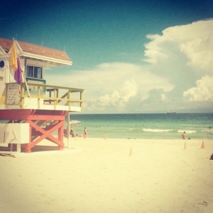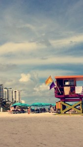 – La plage: Si vous aimez les plages de sable blanc avec une eau chaude bleu turquoise vous allez être servis! La plage de South Beach est immense et longe tout le côté est de l’île. Vous pouvez y accéder par « Collins avenue » et par une des avenues les plus connues « Ocean Drive ». Pour vous y rendre, il suffit juste de demander à votre uber ou taxi de vous déposer sur Ocean drive. Vous pouvez aussi prendre un bus (ticket à 2 dollars) qui vous rapprochera de la plage mais aucun bus ne s’arrête sur Ocean Drive. Sinon l’eau est transparente et chaude, c’est un vrai décor de carte postale. Par contre, seul point négatif, il faut faire attention aux méduses 😦
